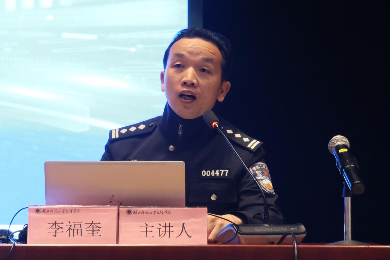 随后,汪仁派出所副所长李福奎结合真实案例详细讲解了大学生群体受骗的高发类型和套路,针对当前电诈案件的新趋势、新特点,重点讲解了刷单诈骗、冒充公检法诈骗等常见手法,通过情景模拟和反诈口诀等形式,帮助同学们提升网络诈骗识别和应对能力。