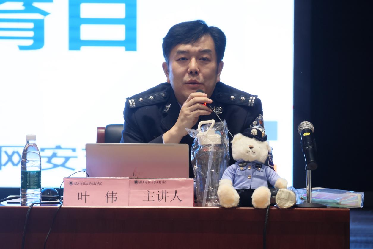 “大家知道什么是国家安全吗?回答正确的,将获得警察玩偶等精美礼品。”市公安局网络安全保卫支队队长叶伟通过法治宣讲、有奖问答等形式,结合自身丰富的专业知识和实践经验,向同学们详细介绍国家安全的基本概念、网络安全的重要性及常见风险类型以及如何维护国家安全等内容。通过剖析典型案件生动揭示了网络安全隐患的隐蔽性与危害性,并就个人信息保护的实用技巧进行了讲解。