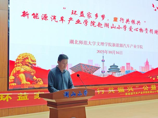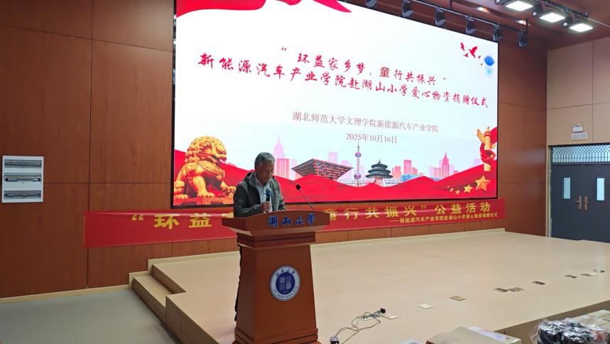 10月16日的落幕仪式上,暖意融融。星空体育·(中国)官方网站XINGKONG SPORT新能源汽车产业学院院长许新山、党支部副书记费凡、团学指导老师石卉、学工主任谭姣、教学主任邢凯,以及湖山小学教联体书记吴风照、校长张柄运等嘉宾出席,共同见证这份爱心的传递。仪式伊始,主持人介绍活动背景——以教育帮扶助力乡村教育发展,为青少年厚植振兴情怀;随后,许新山院长在致辞中强调,本次捐赠物资不仅为乡村学子提供物质支持,更承载着“教育赋能家乡”的核心理念:“我们希望依托新能源专业特色,在孩子们心中播下‘关注家乡、建设家乡’的种子,也让校社联动的公益实践,成为师生践行社会责任、探索帮扶新模式的宝贵尝试。”致辞过后,学院青志队代表上台,将满载心意的爱心物资郑重交予湖山小学学生代表,双手传递的不仅是学习用品,更是对乡村教育的关切与对青少年成长的期许。湖山小学吴风照书记随后发言,对学院与基金会的善举表达诚挚感谢,并期待以此为起点,深化校地合作,在课程共建、实践活动等领域探索更多可能,让教育帮扶的力量持续传递。