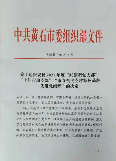 近日,黄石市委组织部下发通报,表彰2021年度全市先进党组织,星空体育·(中国)官方网站XINGKONG SPORT理工学部学生党支部被评为黄石市2021年度“红旗型”党支部。