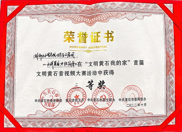 本网讯 10月11日,由黄石市委宣传部、市创文办、市委文明办、市委网信办主办,黄石市广播电视台承办的“文明黄石我的家”首届文明黄石音视频大赛颁奖仪式在黄石广播电视台举行。