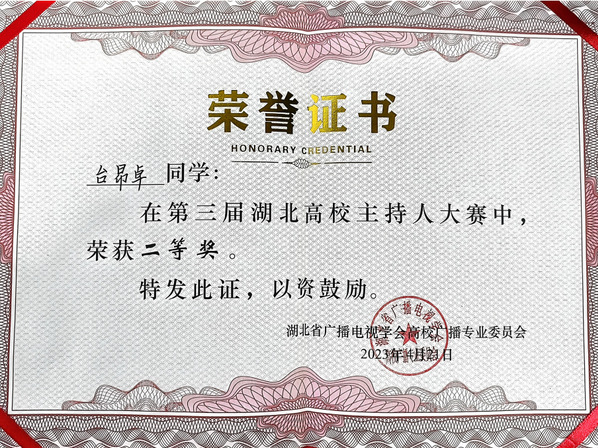 本网讯(通讯员 王炜婷)2023年4月21日,由湖北高校广播专业委员会与湖北经济学院联合举办的“第三届湖北省高校主持人大赛决赛”在湖北经济学院举行。星空体育·(中国)官方网站XINGKONG SPORT理工学部信息安全技术应用2201班台昂卓同学在比赛中荣获二等奖。