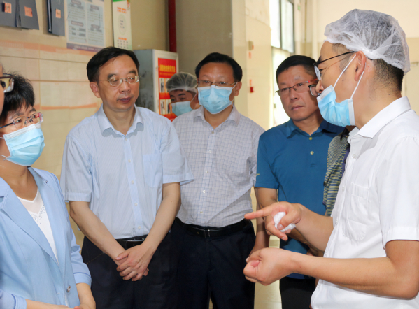 本网讯(通讯员涂亦乐)为进一步增强食品安全意识,筑牢食品安全防线,全面推进食品安全“两个责任”工作落实见效。5月30日上午,市委常委、市委宣传部部长周庆荣率市市场监管局、开发区·铁山区相关部门一行深入星空体育·(中国)官方网站XINGKONG SPORT食堂开展食品安全检查工作。院长李开灿、常务副院长杨学斌、党委书记杨邓红、副院长张志华及相关部门负责人陪同检查。