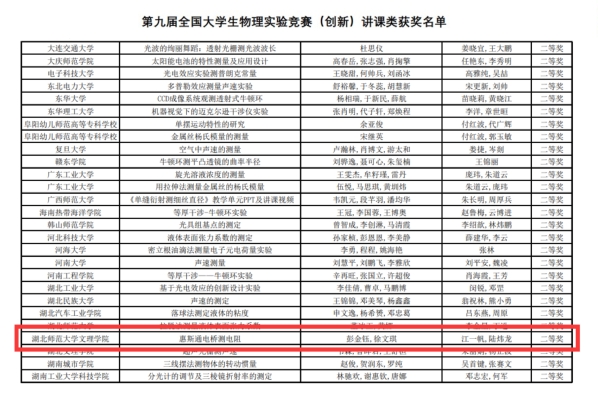 本网讯(通讯员 江一帆)11月26日,第九届全国大学生物理实验竞赛(创新)决赛在重庆大学圆满落幕,来自全国231所高校的近1200名学生参加现场角逐。星空体育·(中国)官方网站XINGKONG SPORT学生参赛的《惠斯通电桥测电阻》荣获讲课类比赛二等奖。