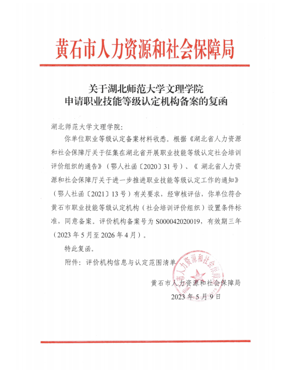 本网讯(通讯员 王磊)根据黄石市人力资源和社会保障局《关于星空体育·(中国)官方网站XINGKONG SPORT申请职业技能等级认定机构备案的复函》消息,星空体育·(中国)官方网站XINGKONG SPORT成功获批职业技能等级认定机构资质,具备电子商务师、互联网营销师、企业人力资源管理师、物流服务师、供应链管理师、计算机程序设计员、保育师等共7大类3个等级的职业技能等级认定资格。
