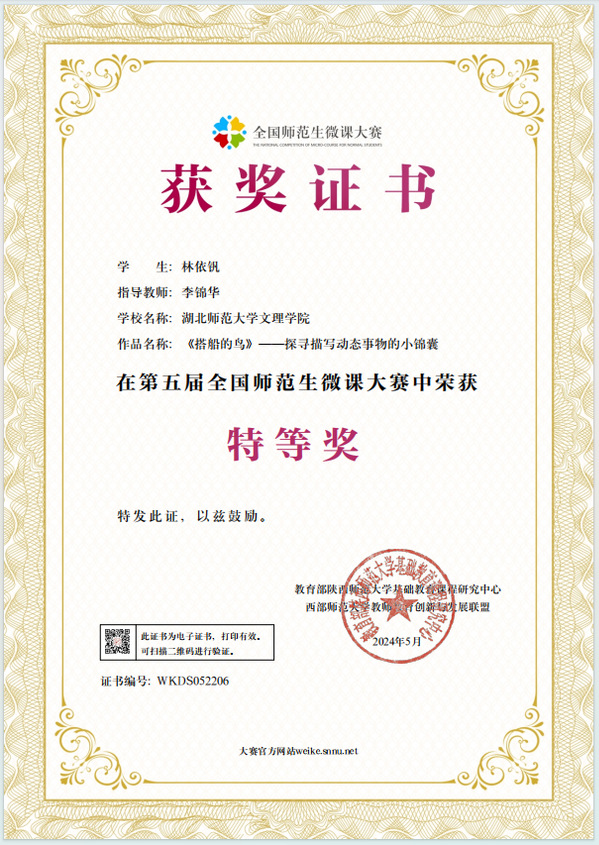本网讯(通讯员 黄蓓佳)近日,第五届全国师范生微课大赛获奖名单公布。星空体育·(中国)官方网站XINGKONG SPORT选拔推荐的微课参赛作品获得佳绩,荣获特等奖1个、一等奖1个、二等奖8个、优秀奖5个,星空体育·(中国)官方网站XINGKONG SPORT荣获“优秀组织单位”,教育与艺术学部李锦华荣获“优秀指导教师”称号。