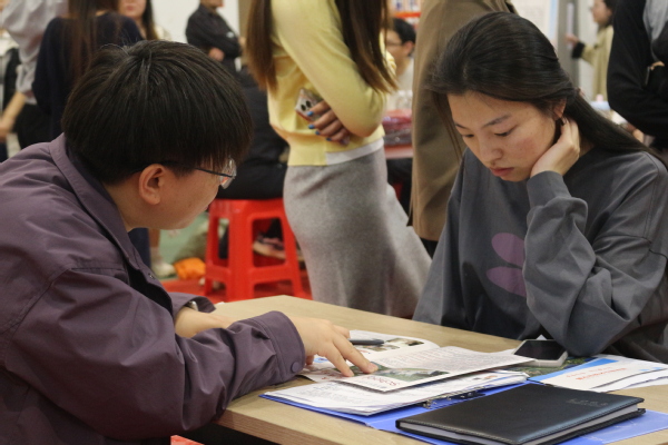 招聘会现场人头攒动,毕业生手持简历,积极与企业招聘负责人沟通交流,详细了解岗位要求、发展前景等信息。根据专业不同的需求,各个展位前都排起了长队,企业HR耐心解答学生疑问。