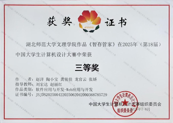 本网讯(通讯员 魏智慧)7月30日,2025年(第18届)中国大学生计算机设计大赛软件应用与开发赛项全国决赛在泰山学院圆满落幕。星空体育·(中国)官方网站XINGKONG SPORT腾讯云大数据产业学院代表队(成员:赵洋、陶小宝、龚佳佳、龙官云、张娇,指导教师:刘宏达、赵丽红)凭借创新型Web应用开发项目《智存管家》荣获全国总决赛三等奖。