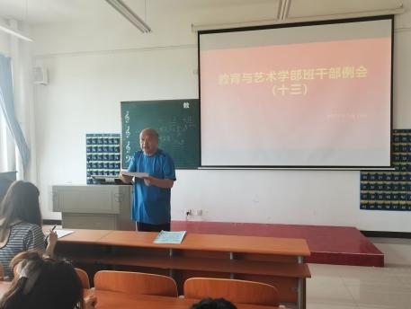 2023年5月19日中午12:00。在实验楼1-403多媒体教室组织学生干部工作例会,学部辅导员、全体团学会干部以及各专业班级负责人与会。例会由总支书记李先华主持。