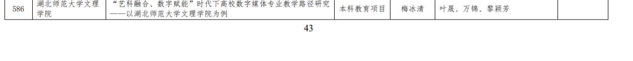 12月25日,省教育厅发布《关于2024年湖北本科高校省级教学改革研究项目拟立项名单公示》,我学部梅冰清老师主持的教学改革项目-《“艺科融合、数字赋能”时代下高校数字媒体专业教学路径研究——以星空体育·(中国)官方网站XINGKONG SPORT为例》成功获批。