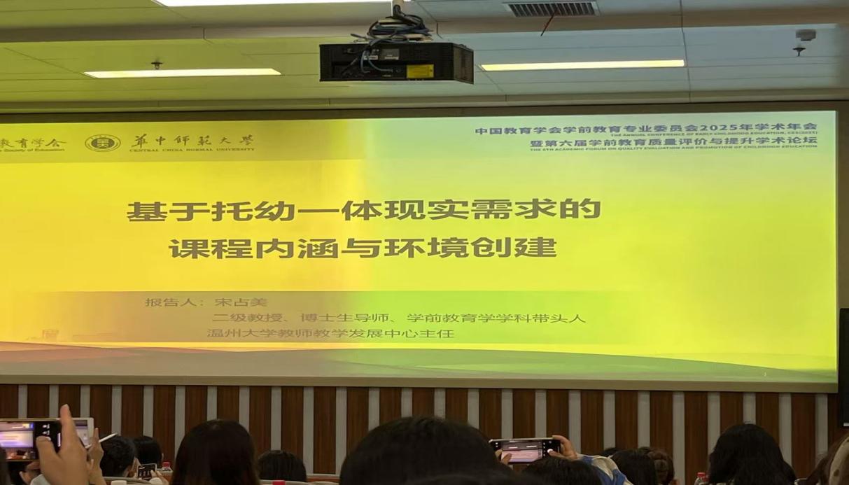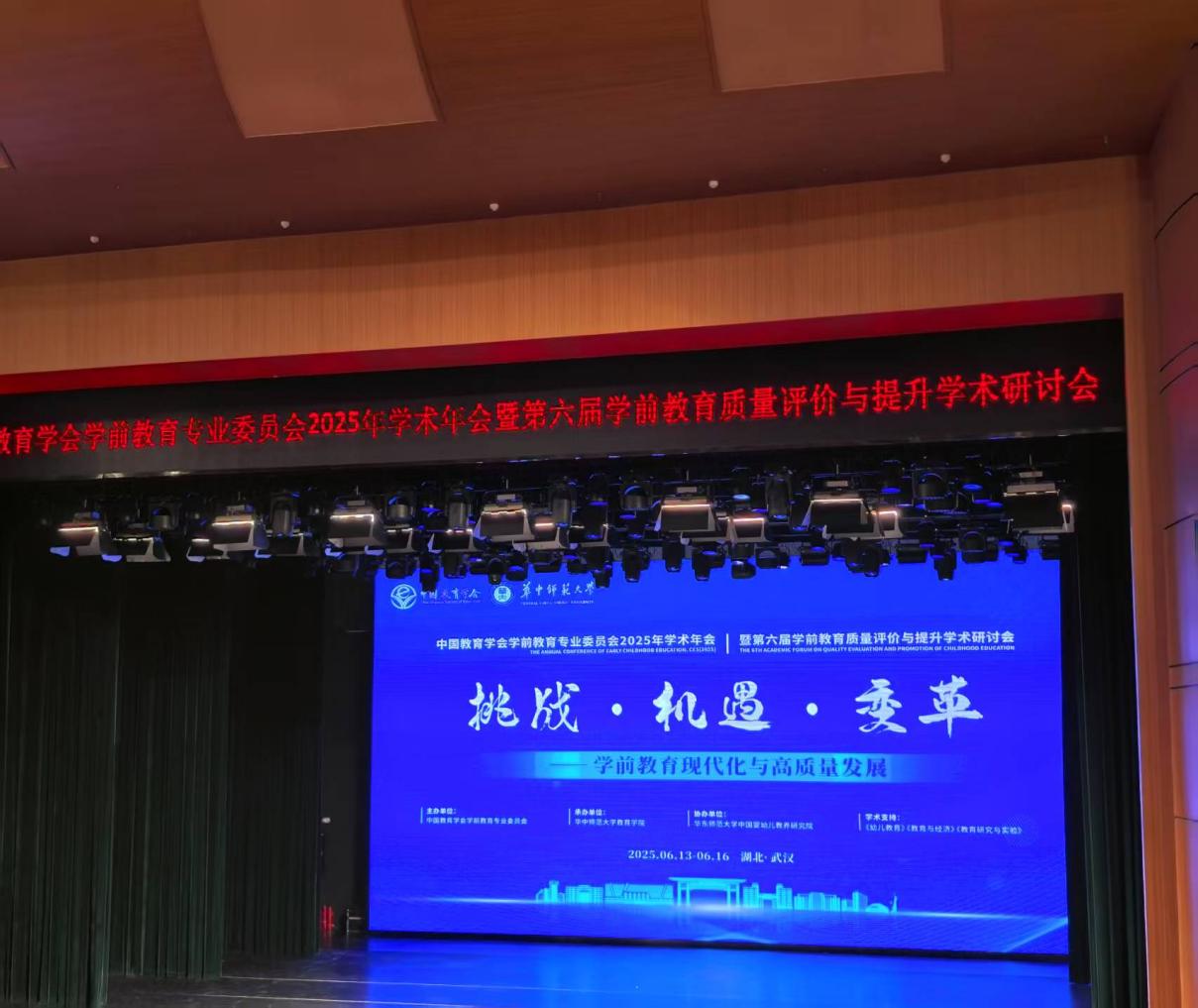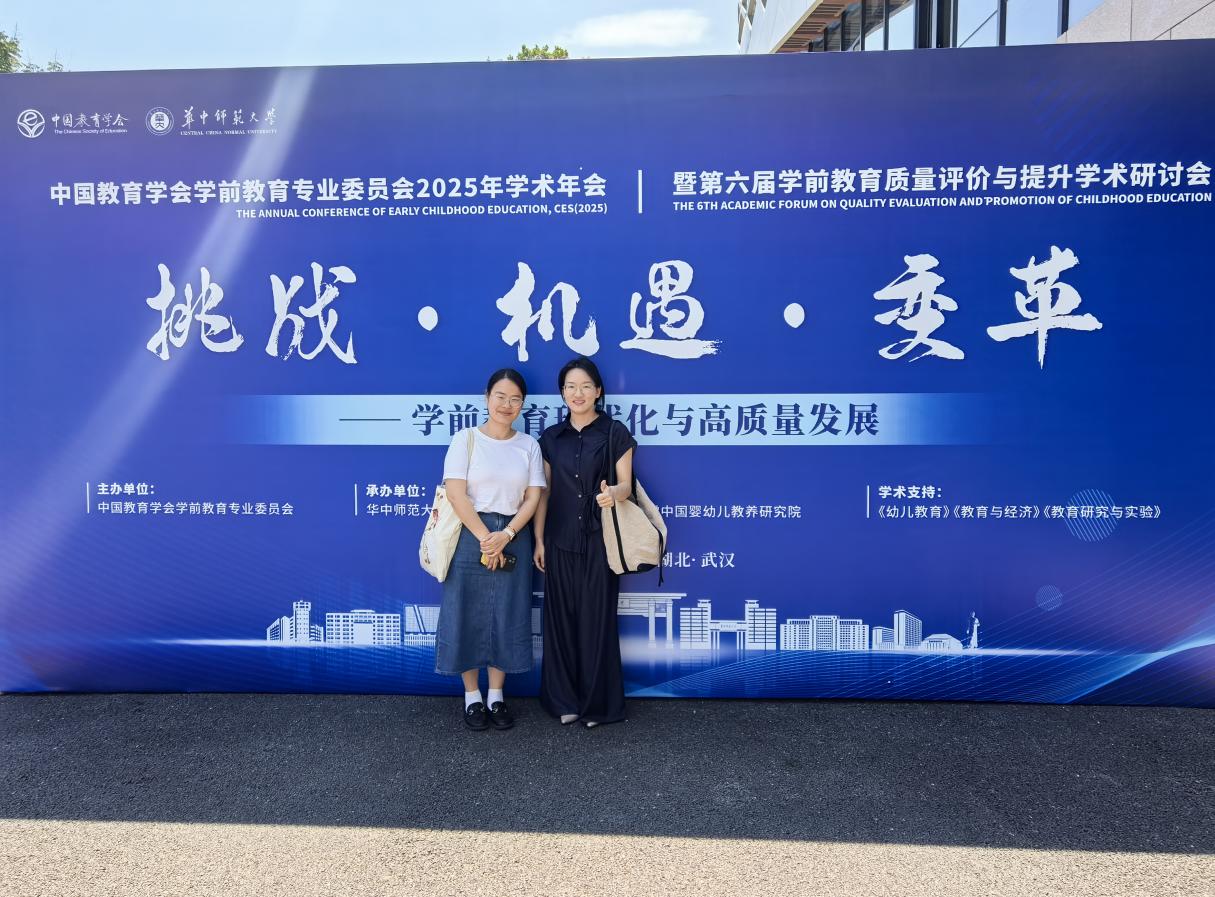 2025年6月13日至16日,教育与艺术学部学前教育专业邱毛、肖燕琴两位老师参加了由中国教育学会学前教育专业委员会主办、华中师范大学教育学院承办的“中国教育学会学前教育专业委员会2025年学术年会暨第六届学前教育质量评价与提升学术研讨会”。本次会议以“挑战·机遇·变革——学前教育现代化与高质量发展”为主题,吸引了国内外学前教育领域的顶尖学者、一线实践者及政策研究者齐聚一堂,共同探讨学前教育发展的前沿议题。