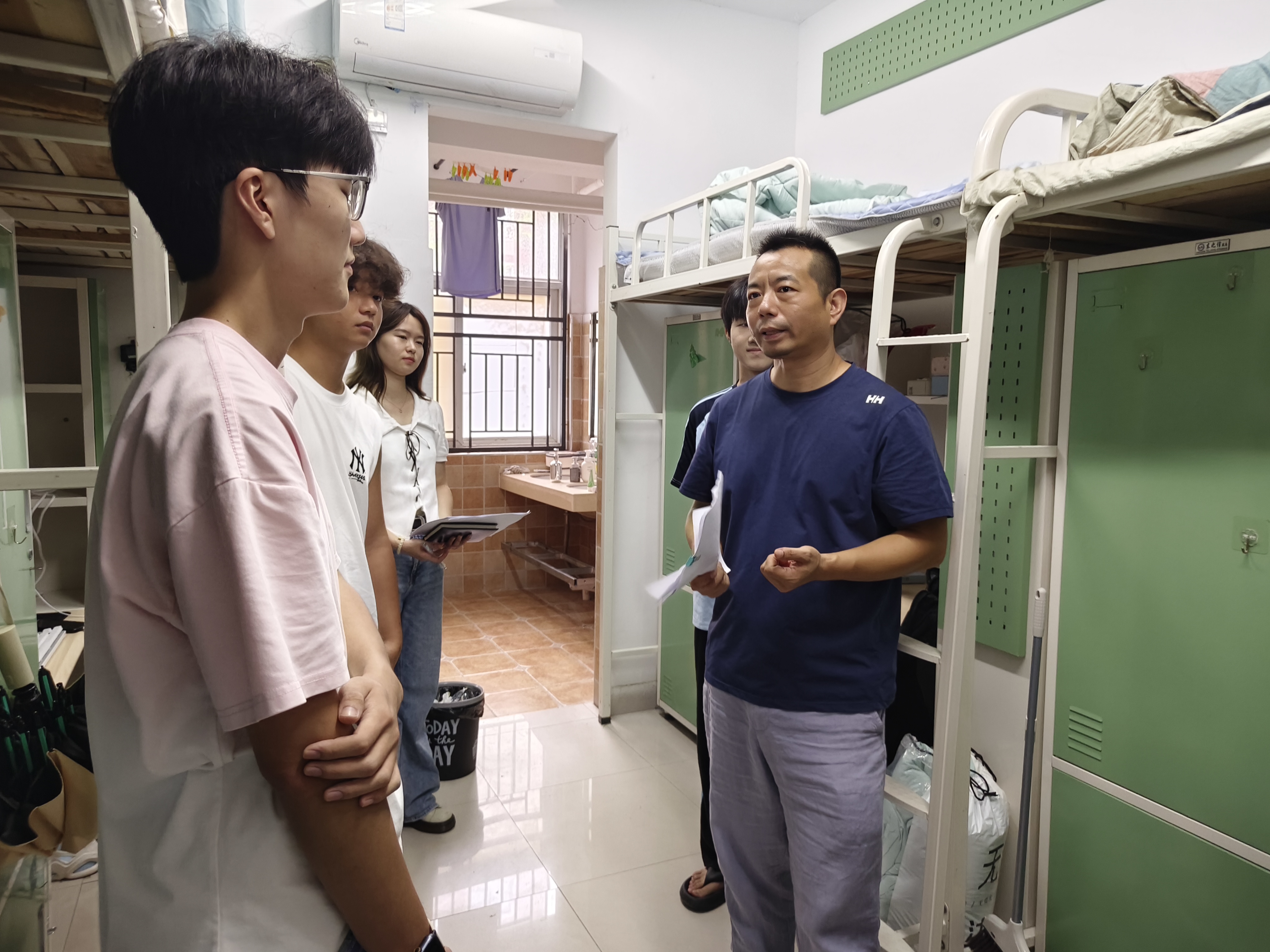 陈小龙书记则重点关注新生住宿条件与宿舍生活氛围,细致询问大家在生活中遇到的困难与需求,对同学们反映的宿舍设施问题逐一详细记录。陈小龙书记现场表示:“学院将第一时间协调后勤部门跟进解决,全力为大家营造安全、舒适、和谐的住宿生活环境。”